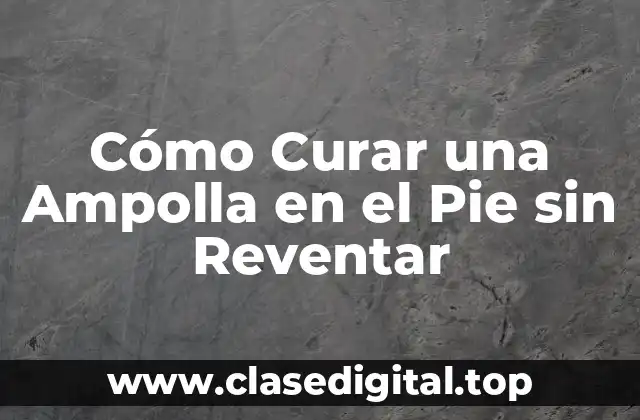 Curar una ampolla en el pie sin reventarla requiere paciencia, cuidado y atención. Algunas formas de curar una ampolla en el pie sin reventarla incluyen: