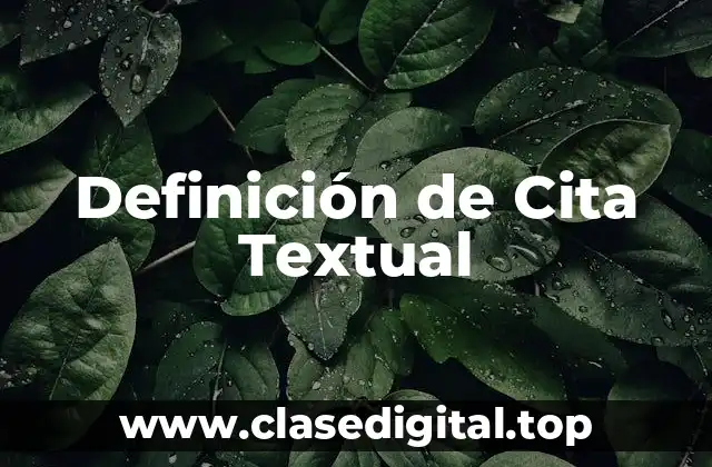 La cita textual se refiere a la reproducción exacta de palabras o frases escritas por otro autor. La cita textual se utiliza para respaldar la argumentación y demostrar la comprensión del texto original.