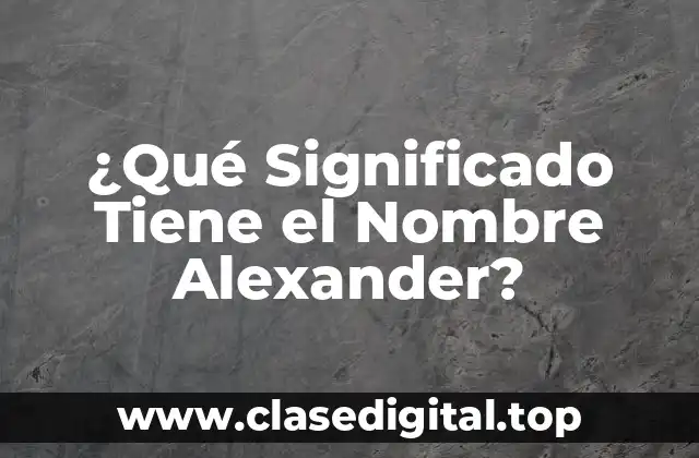 El nombre Alexander es uno de los más comunes y populares en todo el mundo, con una rica historia y un significado profundo detrás de él. Derivado del griego Alexandros, este nombre ha sido llevado por personas destacadas a lo largo de la historia, desde reyes y líderes hasta artistas y científicos. En este artículo, exploraremos el origen y el significado del nombre Alexander, así como su evolución y popularidad a lo largo del tiempo.