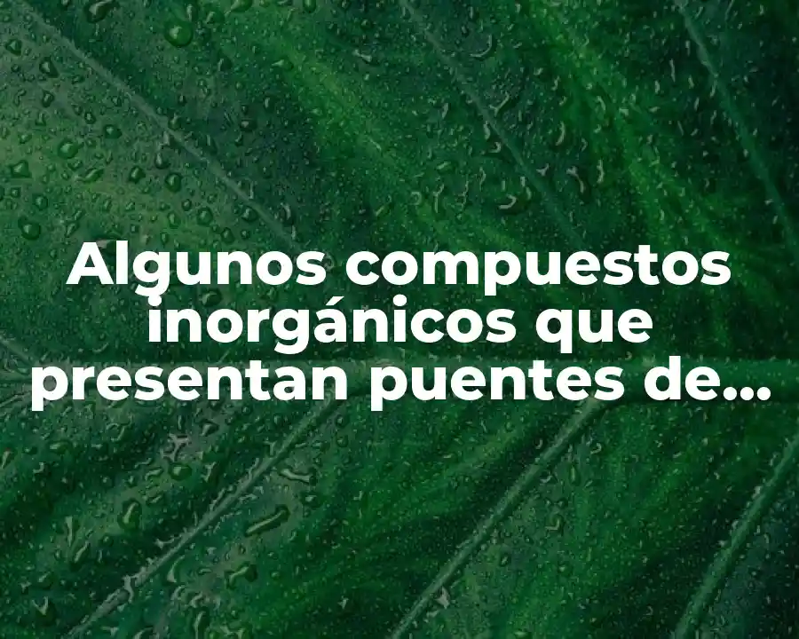 En este artículo, vamos a hablar sobre los compuestos inorgánicos que presentan puentes de hidrogeno, también conocidos como enlaces de hidrógeno. Estos compuestos son fundamentales en la química inorgánica y tienen una gran importancia en various áreas de la ciencia y la tecnología.