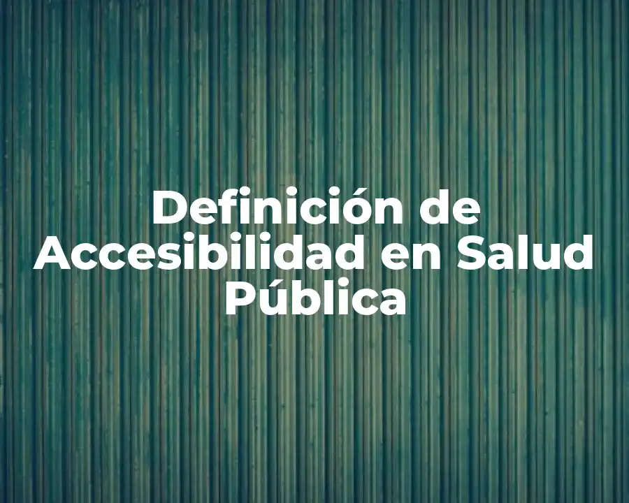 El término accesibilidad en salud pública se refiere a la capacidad de los individuos y grupos a acceder a servicios de salud, información y recursos de manera efectiva y equitativa. Es importante usar este término de manera correcta en una oración, como en un informe o un artículo, para transmitir información precisa y concisa.