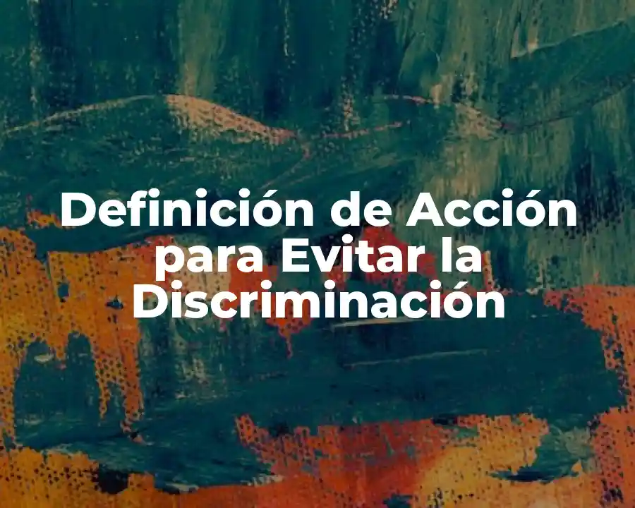 El término Acción para Evitar la Discriminación se refiere a las medidas y estrategias diseñadas para prevenir y reducir la discriminación en cualquier campo. Se debe usar en una oración para describir la acción para evitar la discriminación.