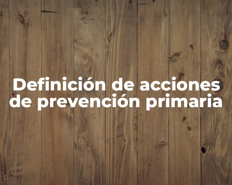 La prevención primaria se define como la acción de evitar la aparición de enfermedades y lesiones en primer lugar. Esto se logra mediante cambios en el estilo de vida, la higiene personal, el uso de equipo de protección y la educación en salud. La prevención primaria es la forma más efectiva de prevenir enfermedades y lesiones, ya que se centra en evitar la aparición de problemas de salud en lugar de tratar de curarlos después de que ocurran.