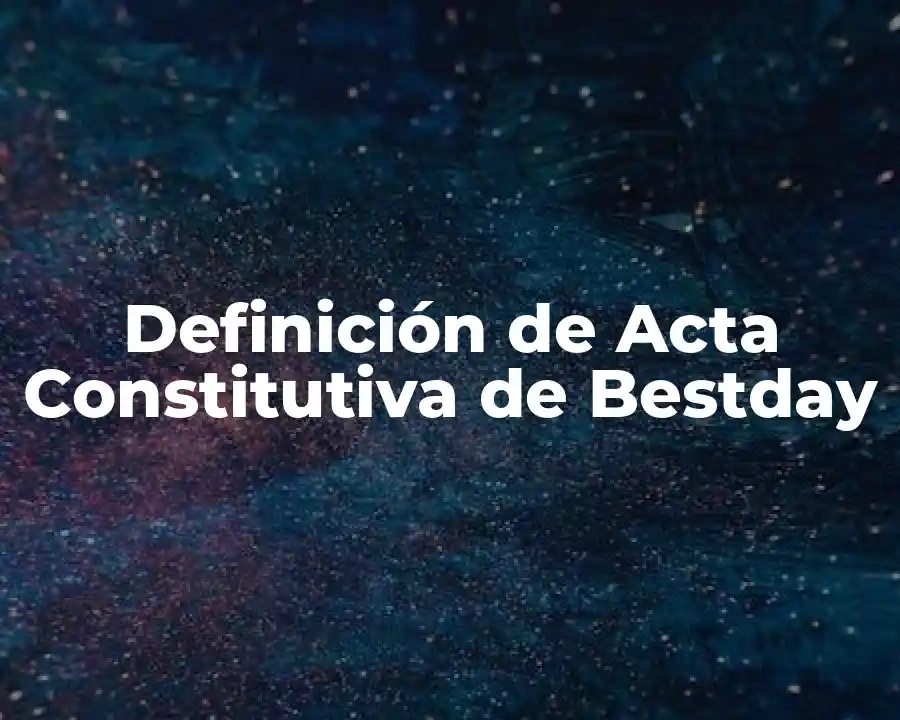 La Acta Constitutiva de Bestday se refiere a un contrato entre los socios que establecen la creación de una empresa y define las responsabilidades y obligaciones de cada uno. Se debe usar en una oración para describir la creación de una empresa y las condiciones bajo las que se establece.