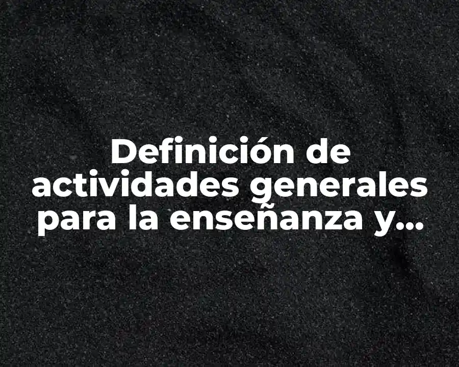 En el ámbito educativo, las actividades generales para la enseñanza y aprendizaje son un concepto clave para el desarrollo de habilidades y conocimientos en los estudiantes. En este artículo, exploraremos la definición, ejemplos y características de estas actividades, y cómo se pueden utilizar para mejorar el proceso de enseñanza y aprendizaje.