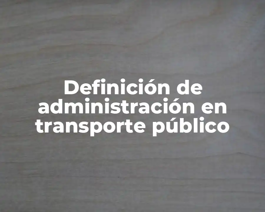 El término administración en transporte público se refiere al proceso de planificación, organización, liderazgo y control de los recursos y actividades relacionadas con el transporte público. Se debe usar en una oración como La administración en transporte público es un proceso importante para garantizar que los sistemas de transporte público sean eficientes y seguros.