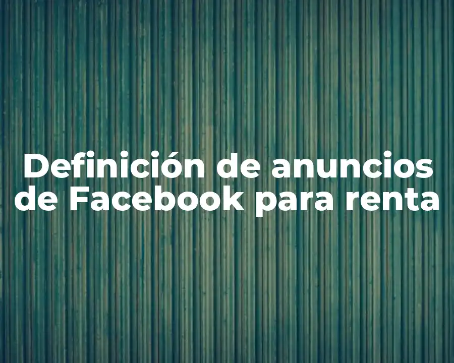 El término anuncios de Facebook para renta se refiere a la forma en que los propietarios de inmuebles promocionan sus propiedades en línea para atraer a los inquilinos. Se puede usar en una oración como: Los anuncios de Facebook para renta son una forma efectiva de promocionar inmuebles disponibles para alquilar.