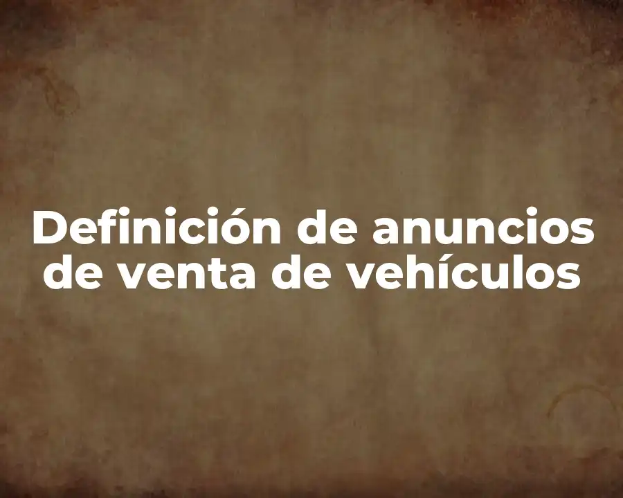 Un anuncio de venta de vehículos es una publicidad que se utiliza para promover y vender vehículos nuevos o usados. El término anuncio de venta de vehículos se refiere a la publicidad en sí misma, mientras que venta de vehículos se refiere al proceso de vender el vehículo.