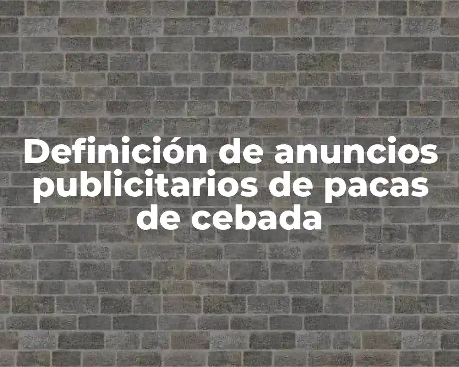Un anuncio publicitario de pacas de cebada es una forma de promoción que se utiliza para vender o promocionar pacas de cebada a los consumidores. Estos anuncios suelen ser utilizados en diferentes plataformas, como redes sociales, periódicos, revistas y televisión, y tienen como objetivo atraer la atención de los consumidores y convencerlos de comprar el producto. Los anuncios publicitarios de pacas de cebada suelen incluir información detallada sobre las características, beneficios y ventajas de las pacas de cebada, así como imágenes o videos que las muestren en acción.