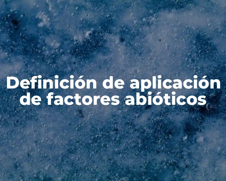 El término aplicación de factores abióticos se refiere a la influencia de factores no relacionados con la vida de los seres vivos, como la temperatura, la luz, la humedad, la topografía y la composición química del suelo, en la vida de los seres vivos. Se debe usar en una oración como La aplicación de factores abióticos es fundamental para entender cómo los seres vivos se adaptan y se desarrollan en diferentes entornos.