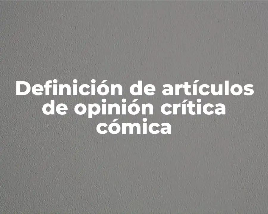 El término artículos de opinión crítica cómica se refiere a textos que combinen la crítica y la comedia para expresar una opinión o punto de vista sobre un tema específico. Se debe usar en una oración como sigue: Los artículos de opinión crítica cómica son una excelente manera de transmitir mensajes importantes y críticas de manera divertida y atractiva.