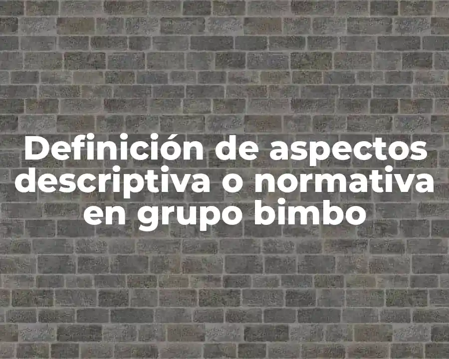 El término aspectos descriptiva o normativa en el Grupo Bimbo se refiere a la descripción de los productos y procesos, así como a la aplicación de las normas y regulaciones establecidas por las autoridades. Esto permite garantizar la calidad y seguridad de los productos, reducir riesgos y mejorar la eficiencia en la producción y distribución de los productos.