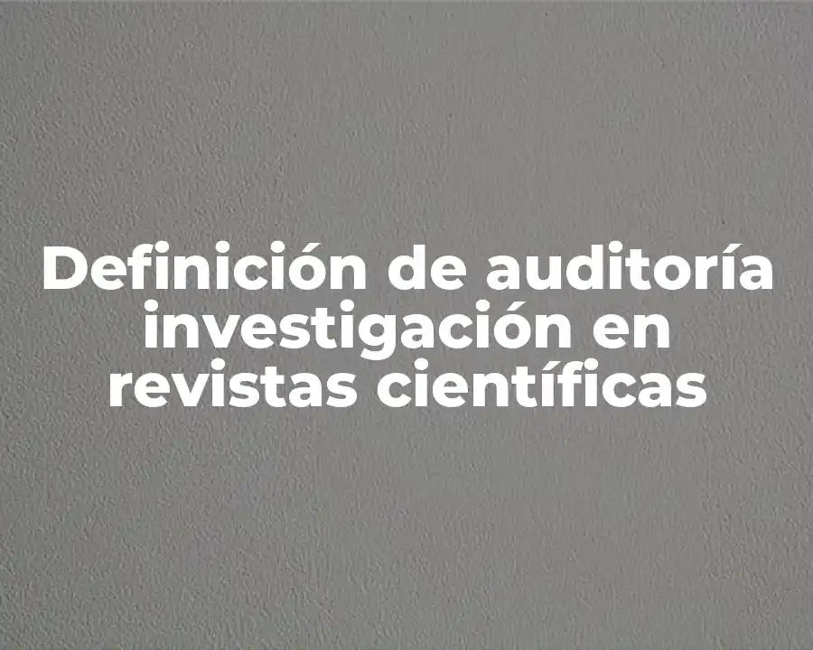 El término auditoría investigación en revistas científicas se refiere al proceso de evaluación crítica y sistemática de la calidad y la veracidad de los resultados de investigación publicados en revistas científicas.