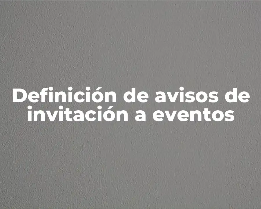 El término aviso de invitación a eventos se refiere a un mensaje que se envía a personas para informarles sobre un evento que se va a celebrar. Debe ser usado en una oración como ¿Has visto el aviso de invitación a eventos para la fiesta de cumpleaños de nuestro amigo?.