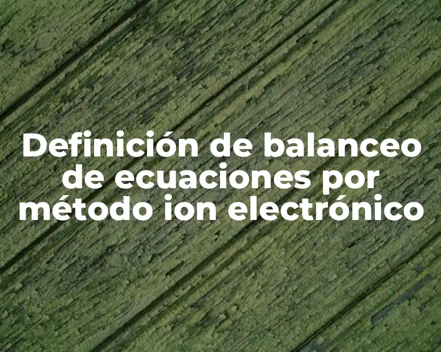 El término balanceo de ecuaciones por método ion electrónico se refiere al proceso de escribir ecuaciones químicas de manera equilibrada y precisa, identificando los iones que se forman durante la reacción y asignándoles un cargo eléctrico. Se debe usar en una oración como: El balanceo de ecuaciones por método ion electrónico es un método preciso y fácil de aplicar para escribir ecuaciones químicas de manera equilibrada y precisa.