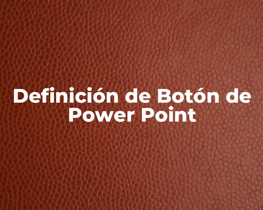 El término botón de Power Point se refiere a un elemento gráfico que se utiliza para interactuar con la presentación y permitir a los usuarios realizar acciones específicas. Se debe usar en una oración como El botón de Power Point permite a los usuarios avanzar a la próxima diapositiva.