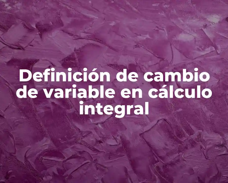 El término cambio de variable en cálculo integral se refiere a la técnica de cambiar la variable de integración de una función en una integral para simplificar su cálculo y resolver problemas más fácilmente. Se debe usar en una oración como la siguiente: El cambio de variable en cálculo integral es una técnica importante para resolver problemas más complicados y simplificar la integral.