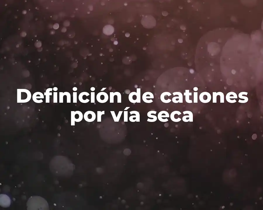 Según el químico alemán Fritz Haber, las cationes por vía seca son compuestos químicos que se caracterizan por ser producidos a partir de la reacción de sales metálicas con bases, sin la presencia de agua. Este autor destacó la importancia de estas cationes en la síntesis de compuestos químicos con propiedades únicas.