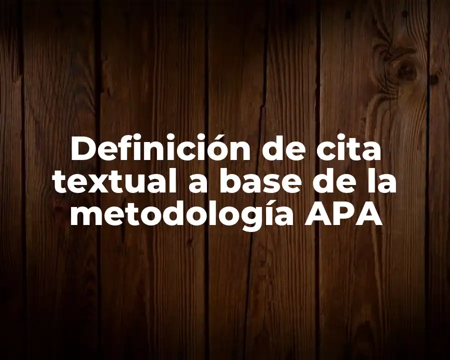 El término cita textual a base de la metodología APA se refiere a la forma en que se cita fuentes secundarias y primarias en trabajos académicos, según las reglas y convenciones establecidas por la metodología APA.