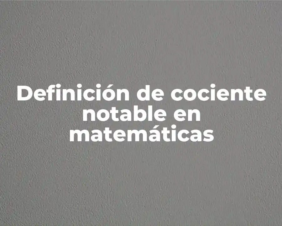 Un cociente notable es un número que se obtiene al dividir dos números enteros positivos, y que es mayor o igual que la raíz cuadrada de su producto. En otras palabras, si se tienen dos números enteros positivos a y b, entonces el cociente notable es el número natural más cercano a la raíz cuadrada del producto ab. Este concepto fue introducido por el matemático estadounidense Derrick Henry Lehmer en la década de 1930.