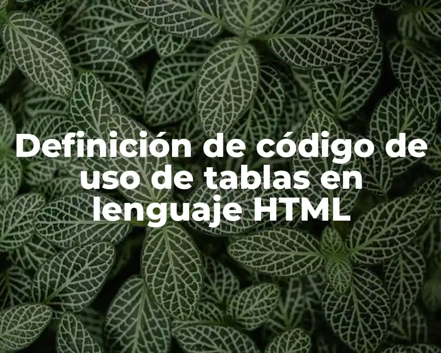 El término código de uso de tablas en HTML se refiere a una secuencia de comandos y estructuras que se utilizan para crear tablas en una página web. Se debe usar en una oración al crear una tabla en una página web.