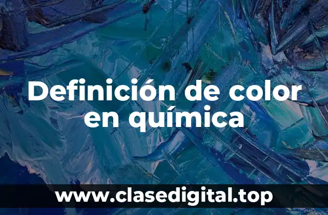 El término color en química se refiere a la propiedad que permite a los compuestos químicos absorber y emitir radiación electromagnética, como la luz visible. El color se puede usar en una oración como El compuesto químico tiene un color azul debido a la absorción de la luz en el rango de 400-450 nm y la emisión de radiación en el rango de 450-500 nm.