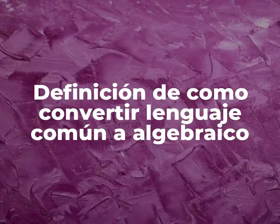 El término conversión de lenguaje común a algebraico se refiere al proceso de reemplazar palabras y frases comunes con símbolos y fórmulas algebraicas. Se debe usar en una oración como sigue: La conversión de lenguaje común a algebraico es un proceso importante en la resolución de problemas matemáticos complejos.