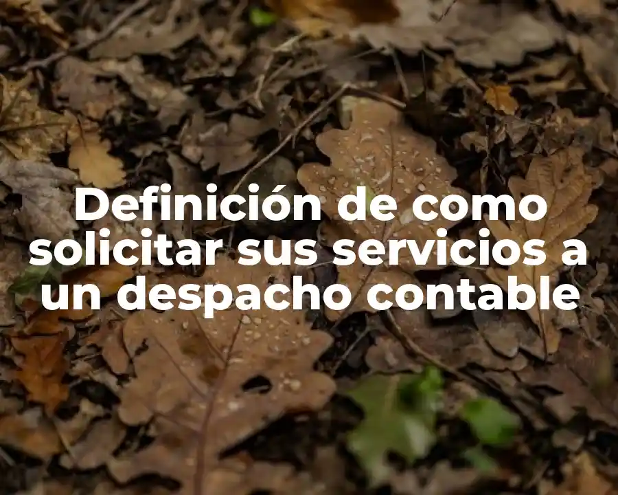 El término como solicitar sus servicios a un despacho contable se refiere a la solicitud de ayuda de profesionales contables para gestionar y analizar las finanzas de una empresa o persona. En una oración, se podría utilizar el término de la siguiente manera: Necesito solicitar los servicios de un despacho contable para que me ayuden a gestionar mis finanzas y obtener una visión clara de mis activos y pasivos.