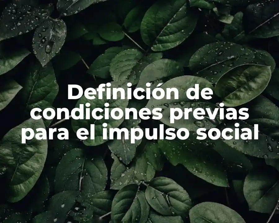 Las condiciones previas para el impulso social se refieren a las condiciones necesarias para que un individuo o una sociedad pueda impulsar a un nivel más alto de acción y desarrollo. Las condiciones previas para el impulso social son fundamentales para impulsar el progreso social, como dice el diccionario de la educación.