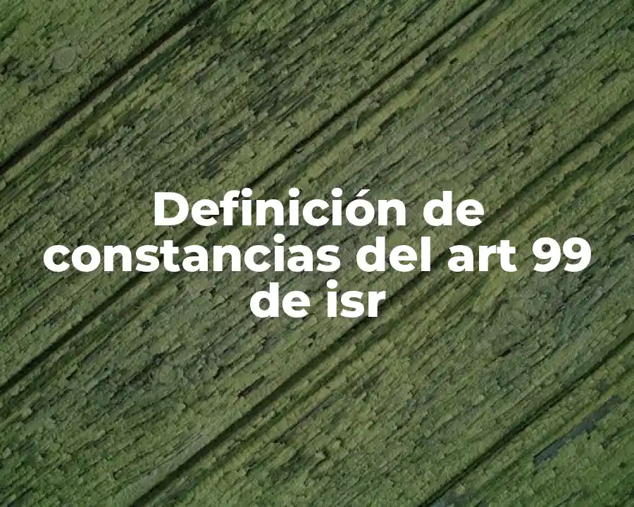 El término constancia del Artículo 99 del ISR se refiere a un documento que acredita la realización de pagos, gastos o inversiones que pueden ser deducidos del impuesto sobre la renta de las sociedades, y se debe usar en una oración como ‘La empresa debe emitir una constancia del Artículo 99 del ISR para acreditar el pago de la renta de un alquiler’.