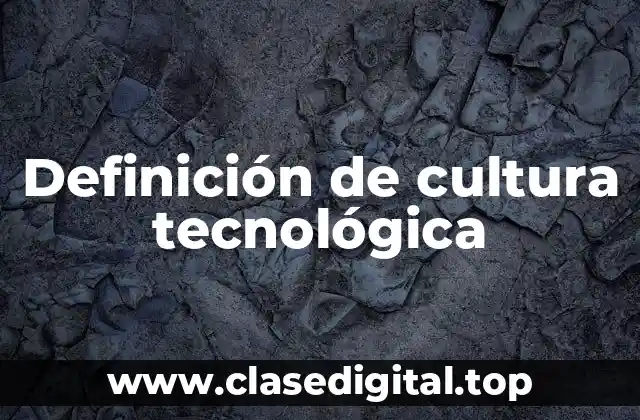 El término cultura tecnológica se refiere a la interacción entre las personas y la tecnología, y se debe usar en una oración para describir la forma en que la tecnología influye en la sociedad. La cultura tecnológica es la forma en que la sociedad interactúa con la tecnología.