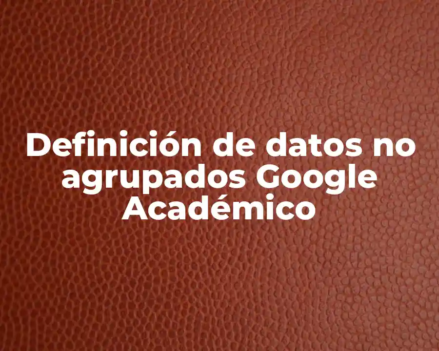El término datos no agrupados Google Académico se refiere a aquellos datos que no tienen una estructura organizada ni una clasificación explícita. Se debe utilizar este término para describir los datos que no tienen una estructura organizada ni una clasificación explícita, ya sea en la investigación académica o en la literatura científica.
