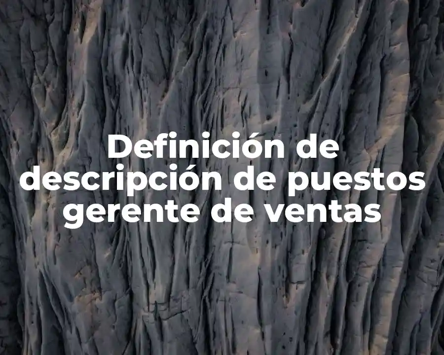 El término descripción de puestos gerente de ventas se refiere a un instrumento que define las responsabilidades y objetivos del gerente de ventas, y se debe usar en una oración como ejemplo de cómo se define la responsabilidad y objetivos del gerente de ventas.