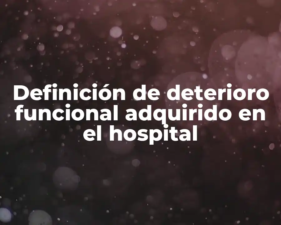 El término deterioro funcional adquirido en el hospital se refiere a la disminución en la función física o cognitiva del paciente durante su estancia en el hospital. Se debe usar en una oración como sigue: El deterioro funcional adquirido en el hospital es un problema común en la atención médica, lo que puede afectar negativamente la calidad de vida de los pacientes y su capacidad para recuperarse de la enfermedad.