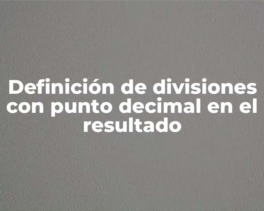 El término divisiones con punto decimal en el resultado se refiere a la técnica matemática de dividir un número entre otro y obtener un resultado con decimales. Se debe usar en una oración como por ejemplo: Se utilizó divisiones con punto decimal en el resultado para calcular la velocidad de un objeto que se mueve a una velocidad constante de 5 metros por segundo.