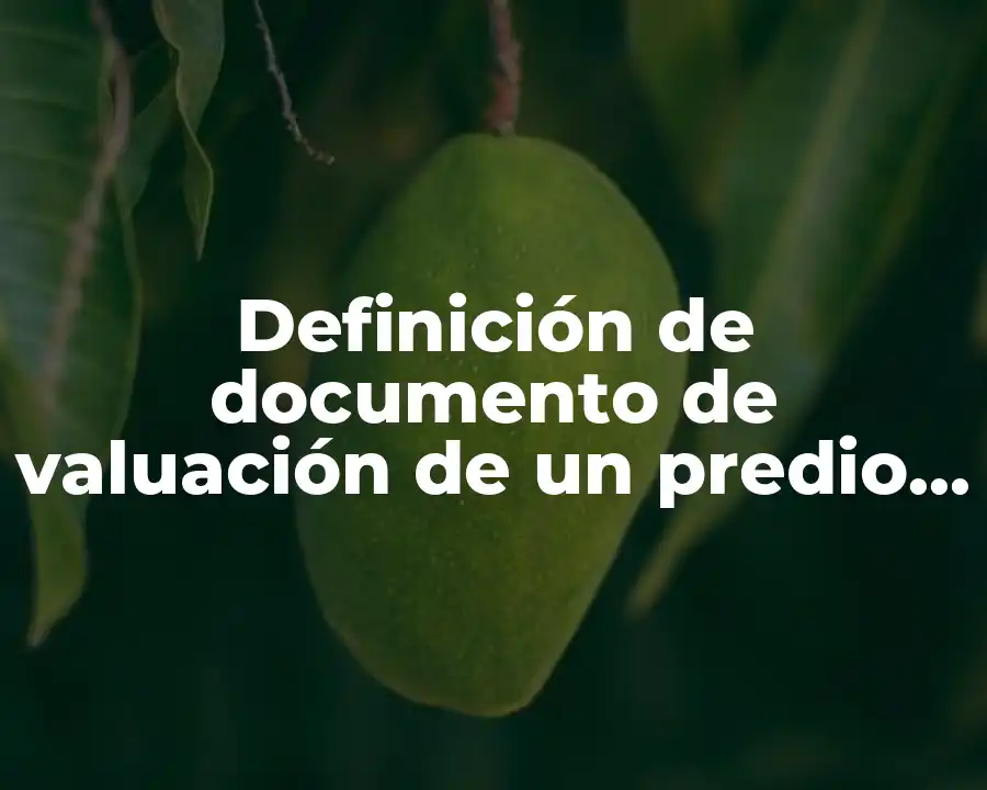 El término documento de valuación de un predio urbano se refiere a un informe escrito que evalúa la propiedad y determina su valor en función de factores como la ubicación, la condición del inmueble, la demanda del mercado y la oferta de propiedades similares. Se debe usar en una oración como: El documento de valuación de un predio urbano es un informe escrito que evalúa la propiedad y determina su valor en función de factores como la ubicación, la condición del inmueble y la demanda del mercado.