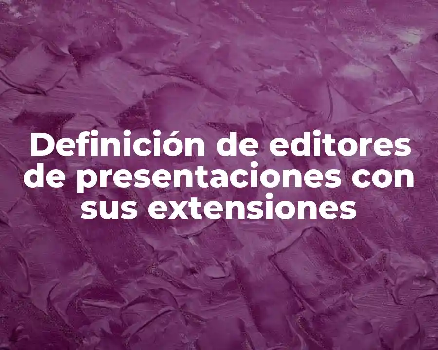 El término editor de presentaciones con sus extensiones se refiere a un programa o aplicación que nos permite crear y editar presentaciones de manera efectiva y atractiva. Esto incluye herramientas y características para hacer nuestras presentaciones más atractivas y efectivas.