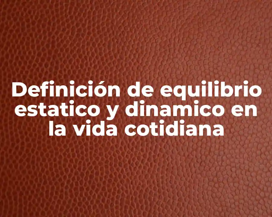 El término equilibrio estatico y dinamico se refiere a la capacidad de mantenerse en equilibrio en diferentes situaciones de la vida cotidiana, sin importar si estamos en movimiento o no. Se puede usar en una oración como El equilibrio estatico y dinamico es fundamental para mejorar nuestra salud y bienestar.