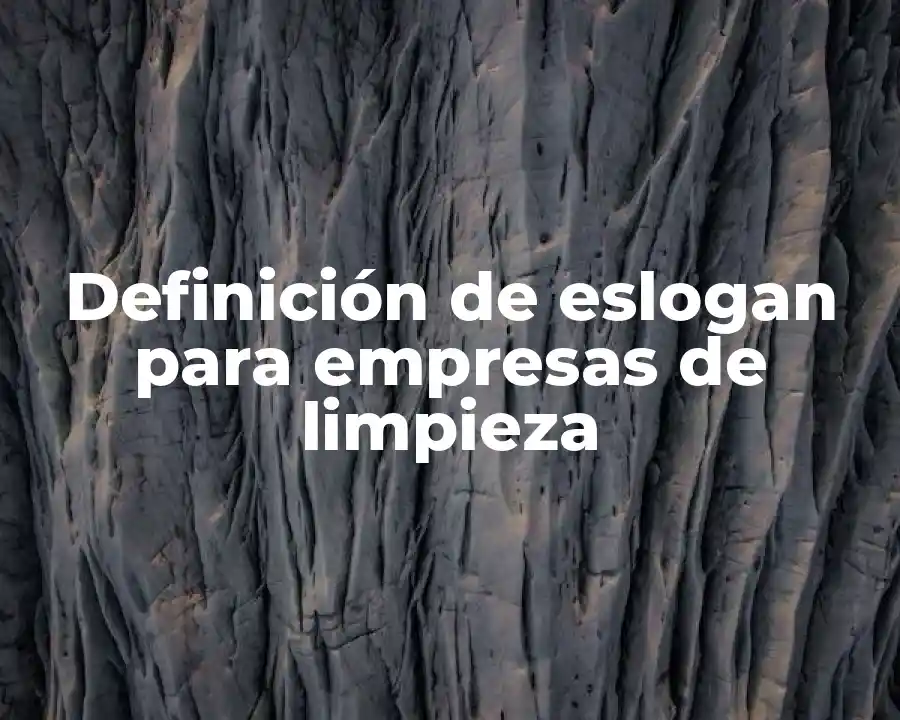 El término eslogan para empresas de limpieza se refiere a una frase corta y memorable que se utiliza para promocionar la marca y la misión de una empresa de limpieza. Se debe usar en una oración como El eslogan para empresas de limpieza de XYZ Cleaning Services es ‘Limpieza con pasión’.
