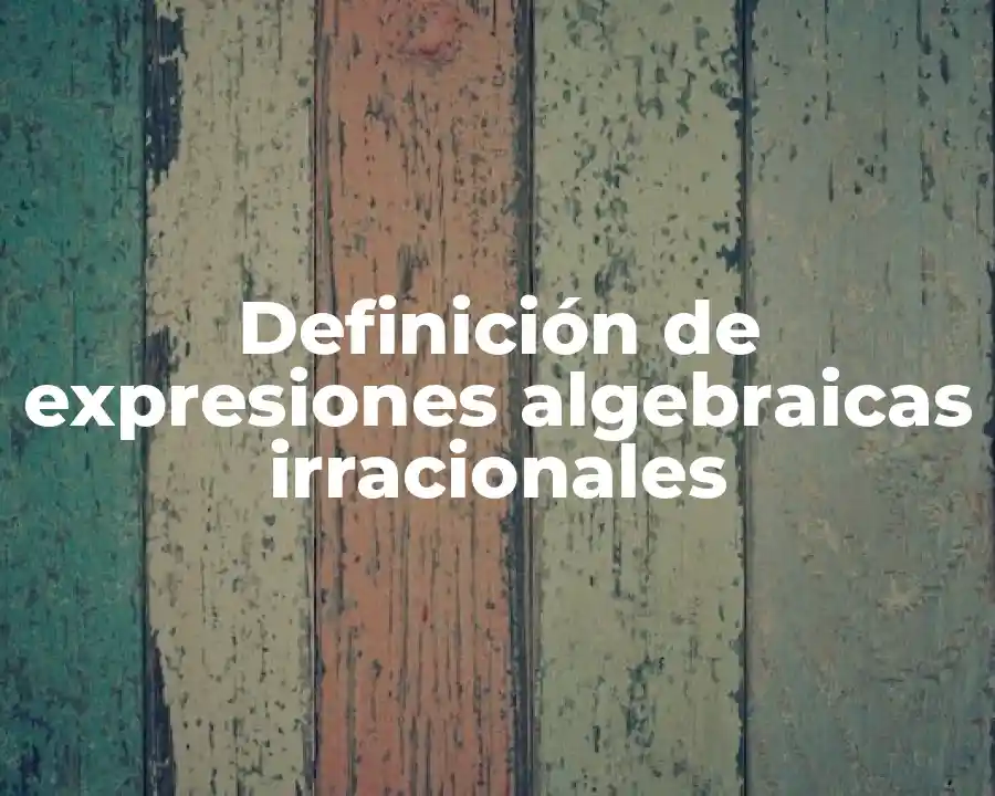 El término expresión algebraica irracional se refiere a un tipo de expresión algebraica que contiene radicaciónes, es decir, la raíz de un número o una variable elevada a un exponente fraccionario o decimal. En una oración, se debe usar el término expresión algebraica irracional para describir una expresión que no puede ser representada con números enteros o fraccionarios, como por ejemplo: La ecuación `x^2 + 2x + 1 = 0` es una expresión algebraica irracional porque contiene la raíz cuadrada de un término.