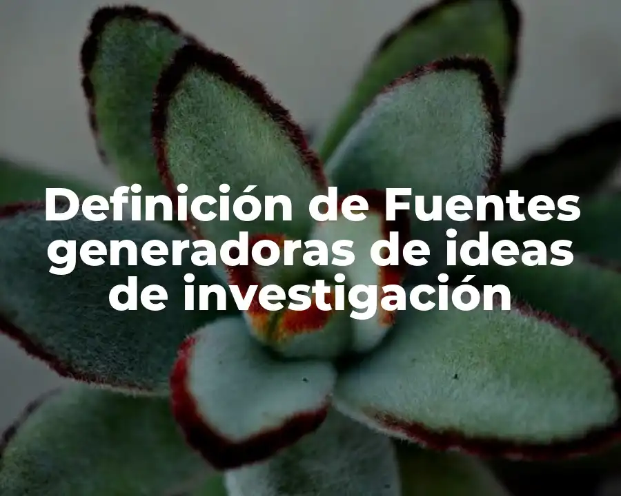 El término Fuentes generadoras de ideas de investigación se refiere a cualquier elemento que ayude a los investigadores a identificar, explorar y desarrollar ideas para su investigación. Se debe usar en una oración para describir la función que desempeñan las fuentes generadoras de ideas de investigación en el proceso de investigación.