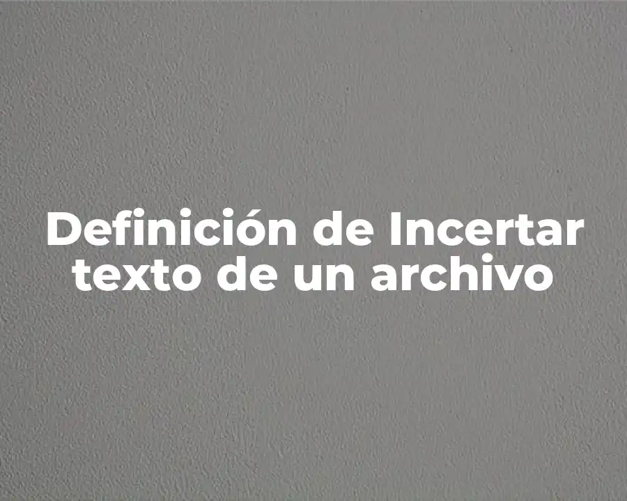 El término incertar texto de un archivo se refiere al proceso de leer y procesar el contenido de un archivo digital. Se debe usar en una oración como La incertarización de texto de un archivo se utiliza para extraer información valiosa de archivos digitales.
