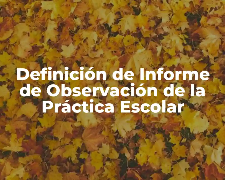 El término Informe de Observación de la Práctica Escolar se refiere a un documento que recopila información sobre la práctica docente en un aula o espacio de aprendizaje. Se debe usar en una oración como sigue: El informe de observación de la práctica escolar evaluó la eficacia de las estrategias educativas utilizadas en el aula.