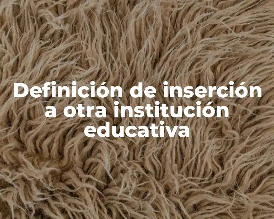 El término inserción a otra institución educativa se refiere al proceso de movilidad de estudiantes, profesores o personal administrativo entre diferentes instituciones educativas. Se debe usar en una oración como La inserción a otra institución educativa es un proceso complejo que implica la movilidad de estudiantes entre diferentes instituciones educativas.