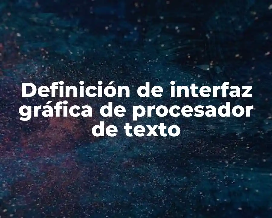 El término interfaz gráfica de procesador de texto se refiere a la representación visual y amigable de la interfaz de usuario de un sistema operativo o aplicación. Se debe usar en una oración cuando se está describiendo la forma en que se interactúa con los sistemas operativos y aplicaciones.