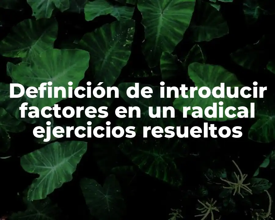 El término introducir factores en un radical se refiere a encontrar un factor común entre el radicando y la raíz que permite simplificar la expresión y hacerla más manejable. Se debe usar en una oración como Se puede introducir un factor en un radical para simplificar la expresión √16.