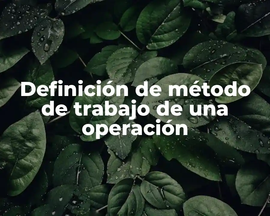 El método de trabajo de una operación se refiere al conjunto de pasos y procedimientos que se necesitan seguir para realizar una tarea o actividad específica dentro de una operación. Es la guía que indica cómo se deben realizar las tareas diarias, semanales o mensuales para lograr los objetivos de la operación. El método de trabajo de una operación es fundamental para garantizar la eficiencia, efectividad y calidad en la realización de las tareas y actividades.