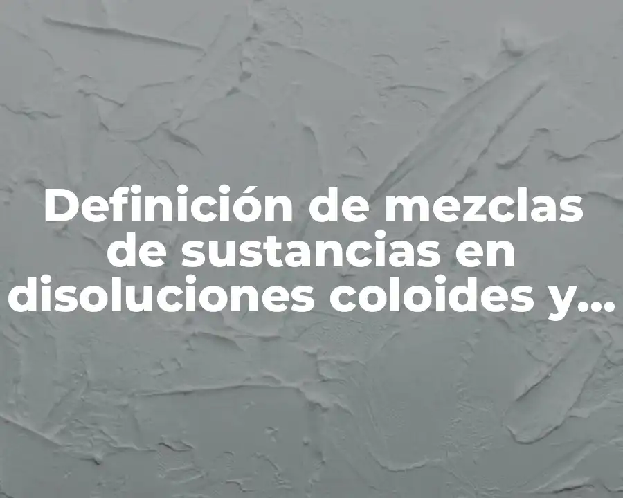 El término mezcla de sustancias en disoluciones coloides y suspensiones se refiere a la unión de dos o más sustancias que no se combinan químicamente, sino que se dispersan en un medio y se mantienen separadas. Se debe usar en una oración como La mezcla de agua y aceite es un ejemplo de una suspensión, donde las gotas de aceite se mantienen suspendidas en el agua.