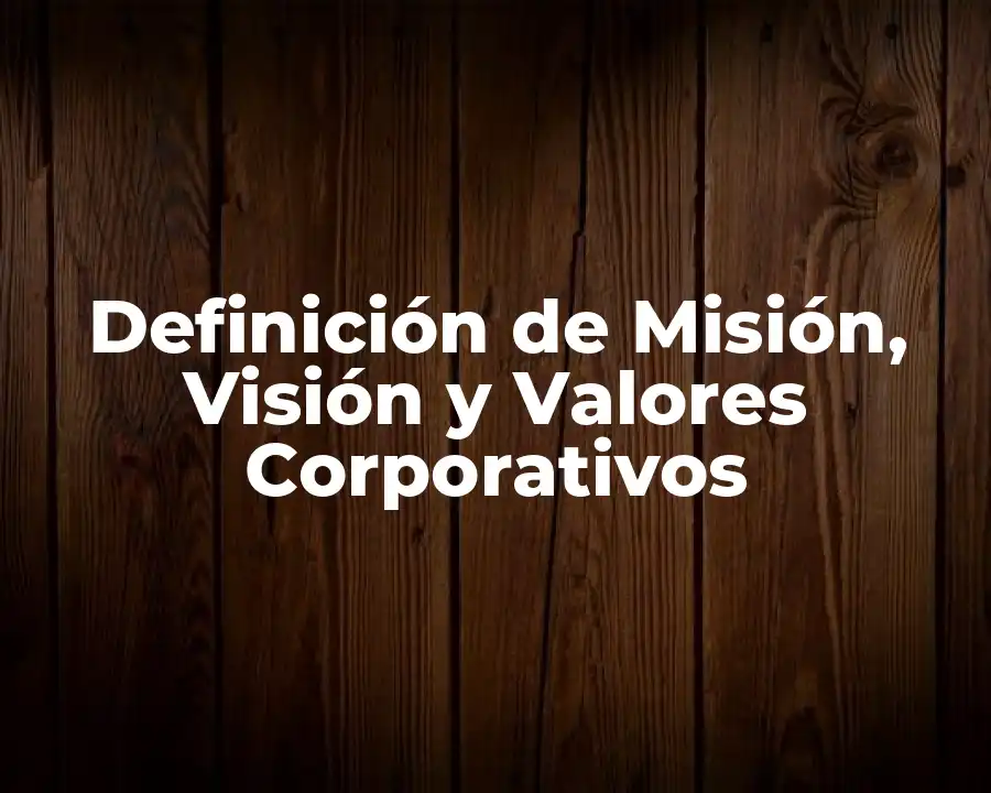 El trmino Misión, Visión y Valores Corporativos se refiere a la descripción de la razón de ser de una empresa, la imagen del futuro que quiere lograr y los principios y creencias que guían la conducta y la toma de decisiones de una empresa. Se debe usar en una oración para definir el propósito y la dirección de una empresa.