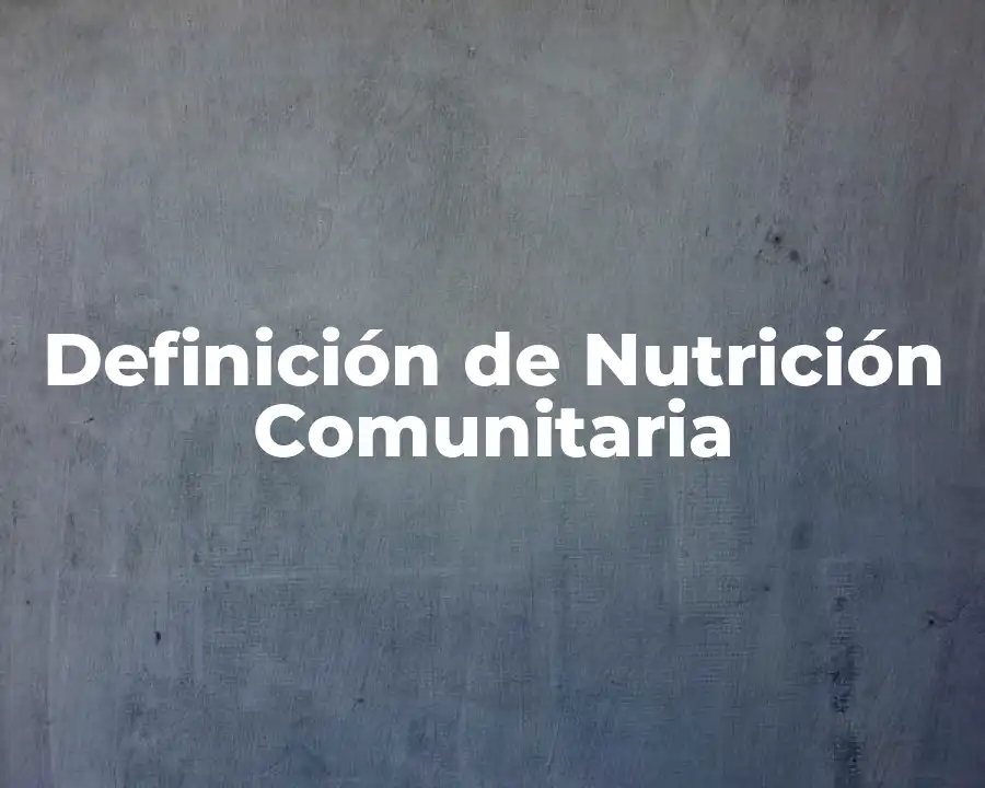 El término nutrición comunitaria se refiere a la promoción de la salud y la prevención de enfermedades a través de la educación y el apoyo a la comunidad. Se debe usar en una oración como La nutrición comunitaria es un enfoque que se centra en la promoción de la salud y la prevención de enfermedades a través de la educación y el apoyo a la comunidad.